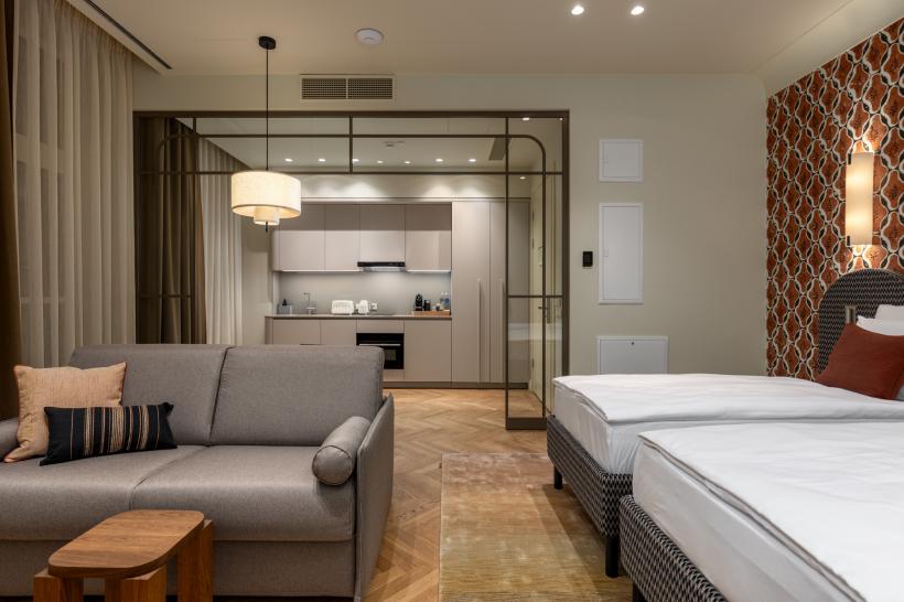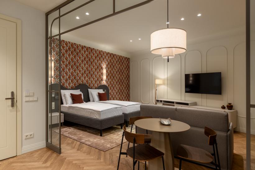 Carillon Aparthotel is a refined apartment hotel located in the very heart of Riga, on one of the oldest streets in the Old Town – Pils iela 13. The hotel’s design is inspired by Riga’s Art Nouveau and Art Deco heritage, with every detail conceived as a harmonious work of art that captivates with its elegance. Our thoughtfully designed 61 apartments provide a comfortable stay for both business travelers and families with children. Carillon Aparthotel is created for travelers who wish to enjoy the warmth of a home-like atmosphere within a sophisticated interior, while maintaining their everyday rhythm even during extended stays away from home.