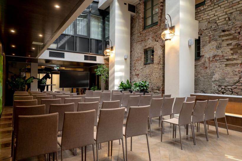 For business travelers, the hotel offers 8 fully equipped meeting rooms (previously described as versatile conference facilities), suitable for small meetings, workshops, or private events of up to 250 guests. The rooms come equipped with great visual technology, and the team is available to assist with every detail. Europark public parking is available nearby for added convenience (surcharge applies).