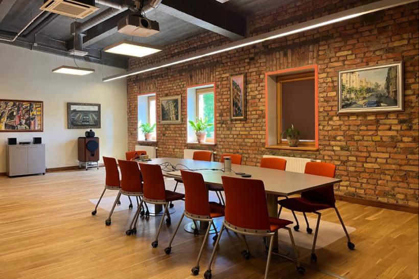 Conversely, for more intimate occasions, we have the cozy VEF Mansards (Attic rooms), thoughtfully designed to provide a comfortable atmosphere by our resident Baiba Prindule-Rence | FEJA. We also offer the VEF Conference Hall | Albert, equipped with cutting-edge videoconferencing technology, ideal for hosting meetings and intimate gatherings.